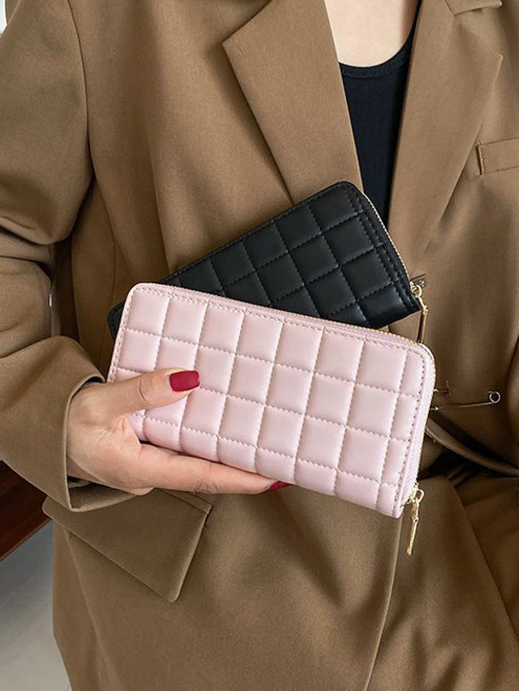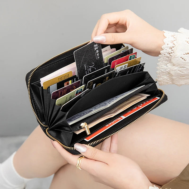 Produzida em couro PU resistente, com acabamento liso e elegante, ela oferece um visual discreto que combina tanto com looks femininos quanto masculinos. O fechamento em zíper garante segurança total, mantendo cartões, dinheiro e objetos pessoais sempre protegidos.